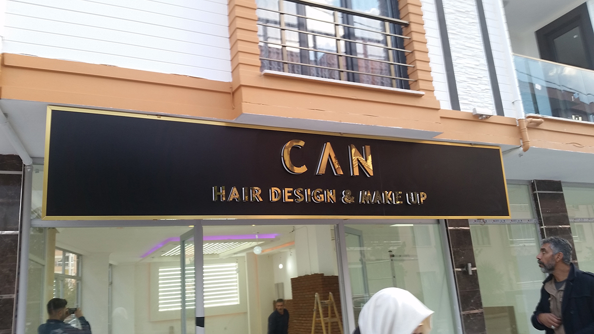Can Kuaför için kompozit üstü altın yaldız ışıklı krom harf tabela hizmetimizi Edremit ofisimizde tamamladık.